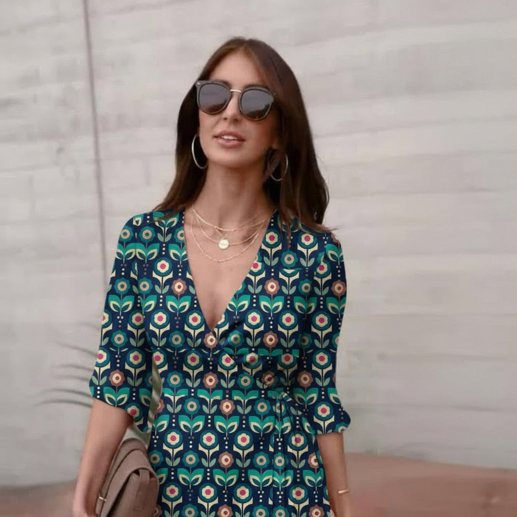 FS082 藍綠色幾何棉質印花布